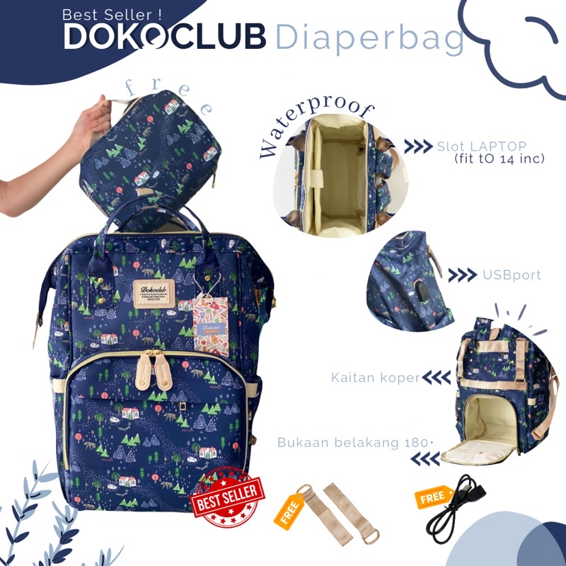 Harga 6.6 BIG SALE !! DIAPER BAG / TAS BAYI DOKOCLUB DIAPERBAG (INC POUCH PORTABLE)